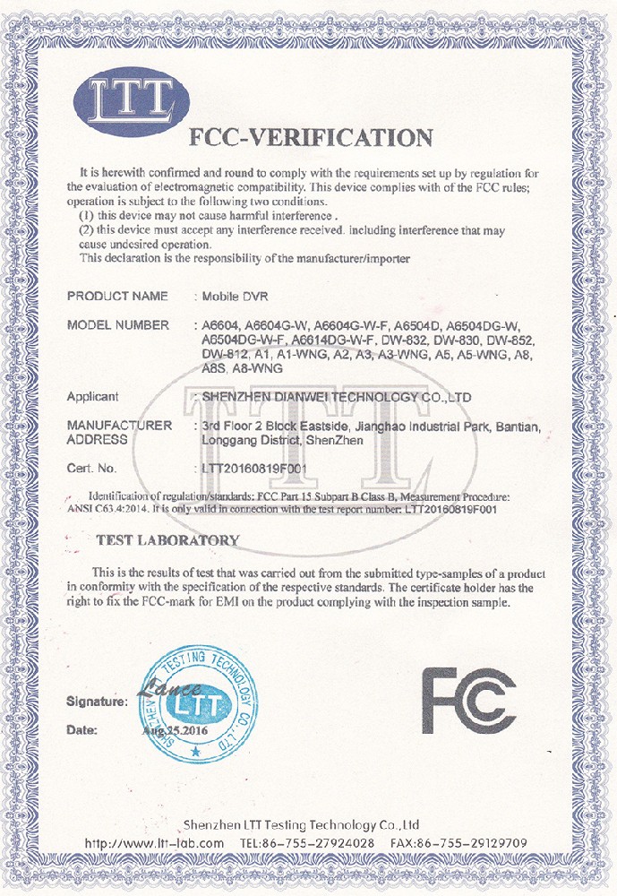 FCC认证证书